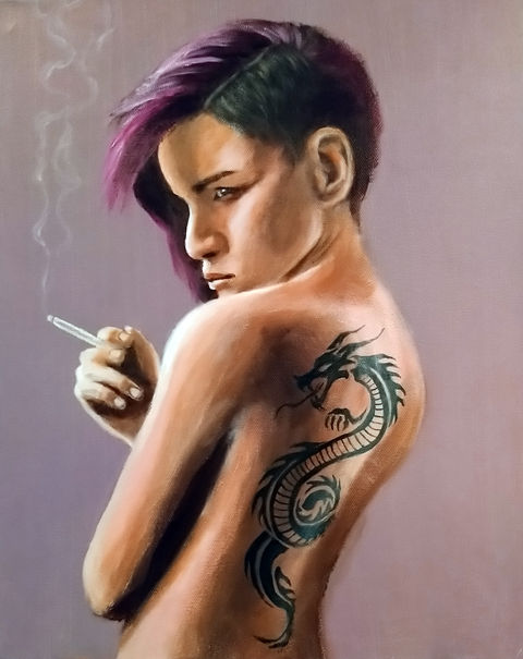 My favourite medium is acrylic because it’s quick and easy, but I also use oils. My favourite subjects are humans, specially those who look like they’ve got a story to tell. I do portraits, figures, genre art, and little scenes around people. I did my first figure drawings on my 2nd birthday, and it looks like I’m still on the same path.